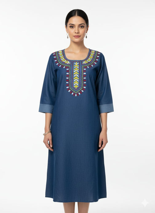 Denim Dress Kurti with Embroidery - New21
